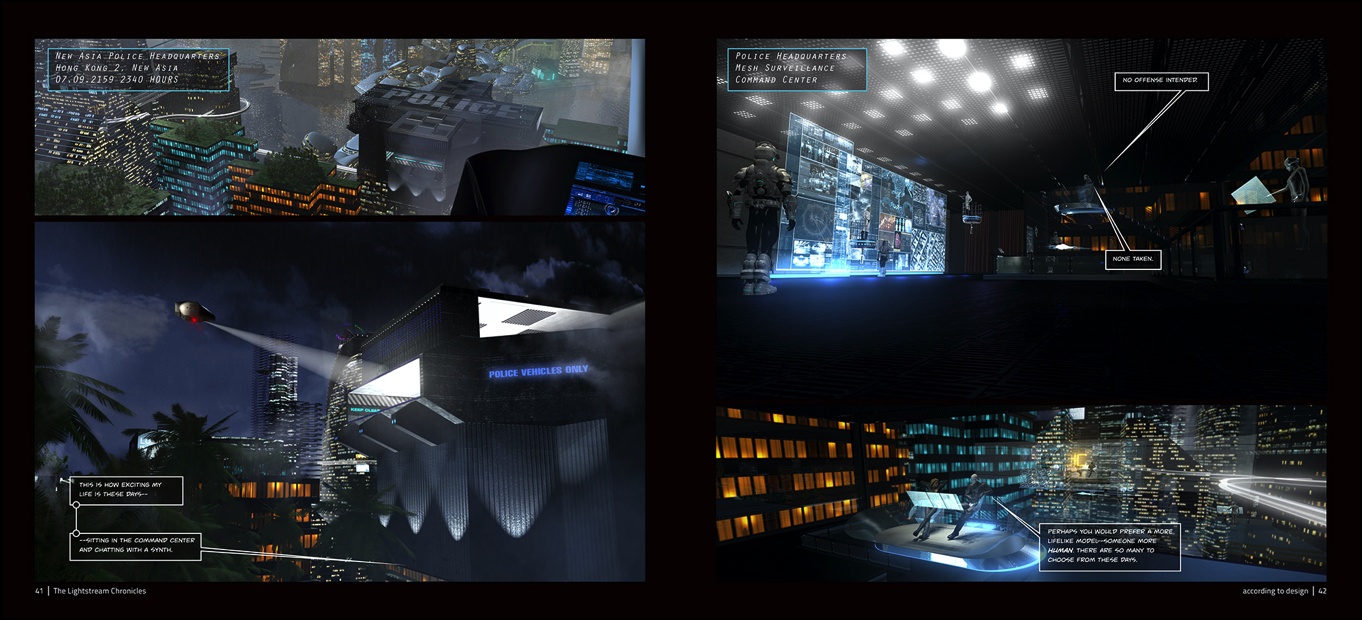 Welcome to New Asia Police Headquarters and the Mesh Surveillance Command Center. The mesh see all, almost all.
