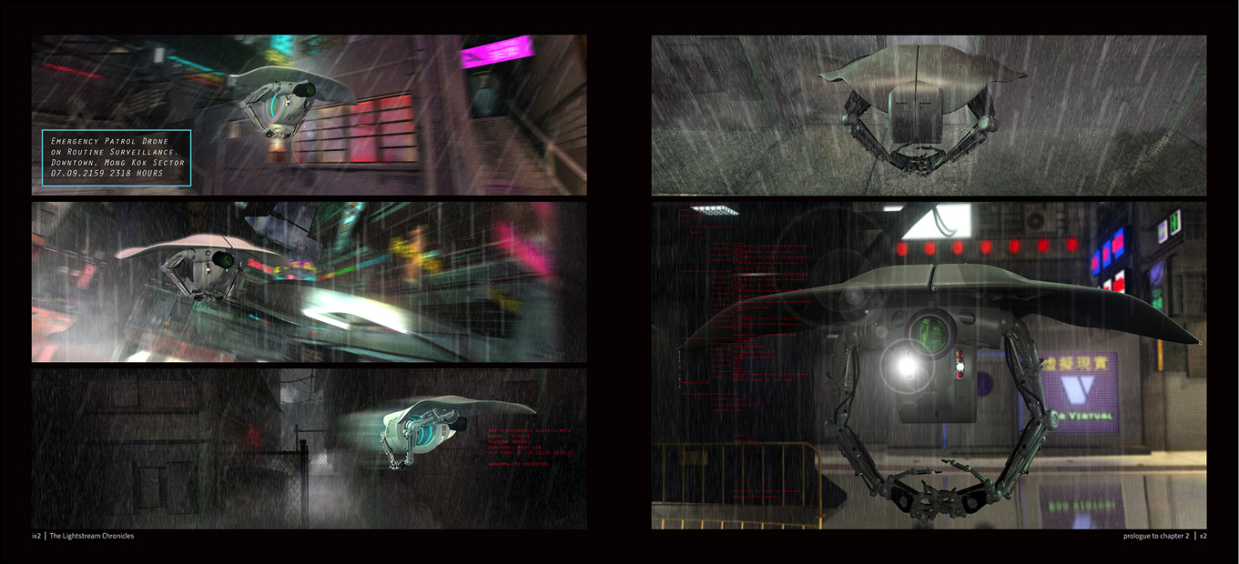Patrol drones. They cruise around the streets of DownTown after curfew looking for things amiss. Looks like it found something.