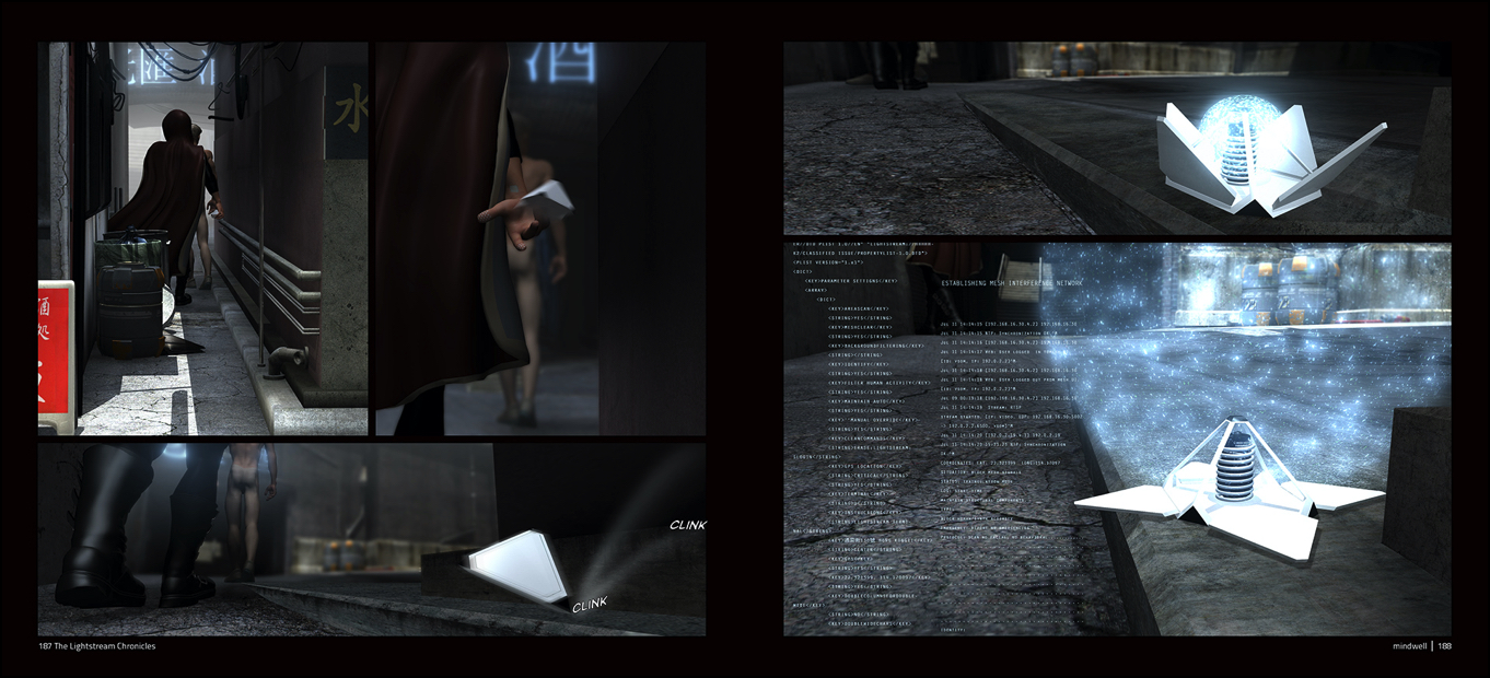 Angel goes deeper into the alley with this mysterious character. Techman deployed a Farraday cage to screen out prying ears and eyes, but in lieu of that there is also the highly illegal mesh jamming device. It sets up a perimeter with a radius of up to 10 meters. Our strange visitor has no interest in recording his afternoon tryst.