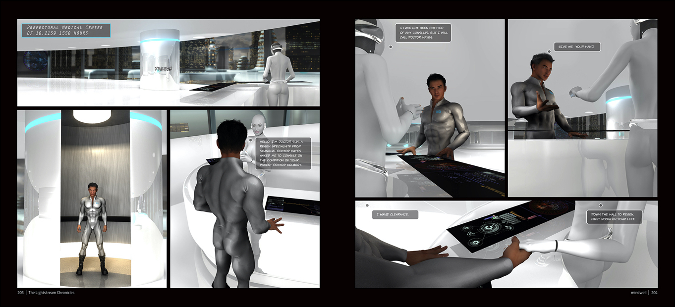 Looks like our man from the alley has made a change of clothes. Well, not really. With SecondSkin (SSkin) technology (see the prologues to Season 5), nanopigments can change the color, thickness, sheen, etc. with your tactile interface.